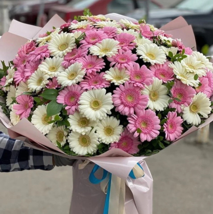 Букет из 101 белой и розовой герберой | Купить в Канберре